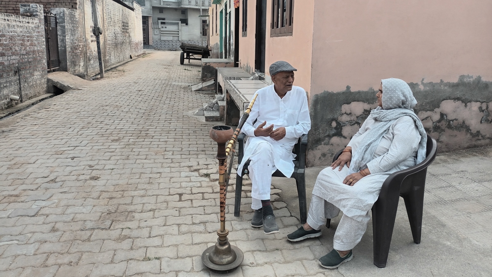 Justice Surya Kant’s brother Rishi Kant, a retired government school teacher, and sister-in-law Rajbala Devi, a homemaker, at their house in Petwar village of Haryana’s Hisar district. (Photo: Sukhbir Siwach)