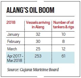 Gujarat Maritime Board (GMB) data shows that from April 2017 to March 2018, 61 of the 253 vessels that reached Alang were oil tankers and rigs.