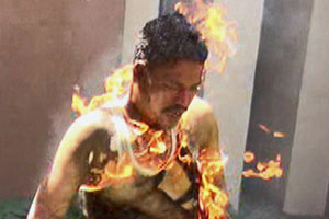 Five persons,including three women,today set themselves ablaze in Rajkot Municipal Corporation office to protest the civic body’s alleged demolition drive,police said.
