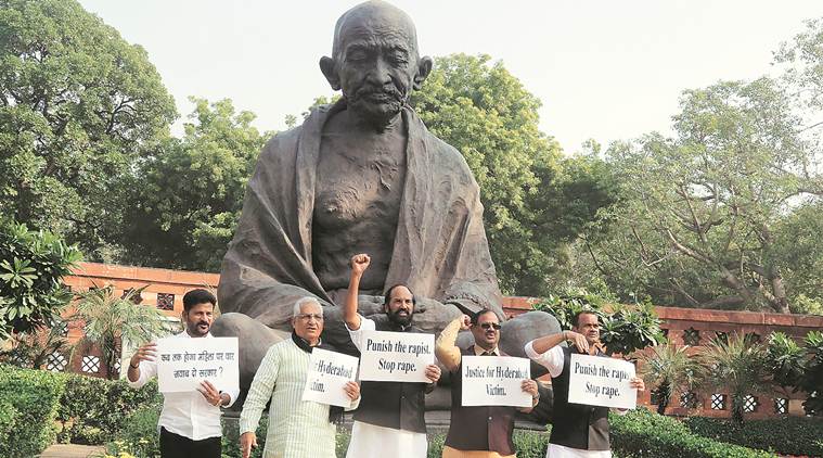 Opening the discussion during Zero Hour, Congress’s Nalgonda MP Uttam Kumar Reddy criticised the Telangana Home Minister for his remarks and slammed the police for delay in lodging the case. Reddy also blamed the sale of liquor along highways in Telangana for the incident and demanded that a fast-track court should conduct the trial and “hang” the accused.