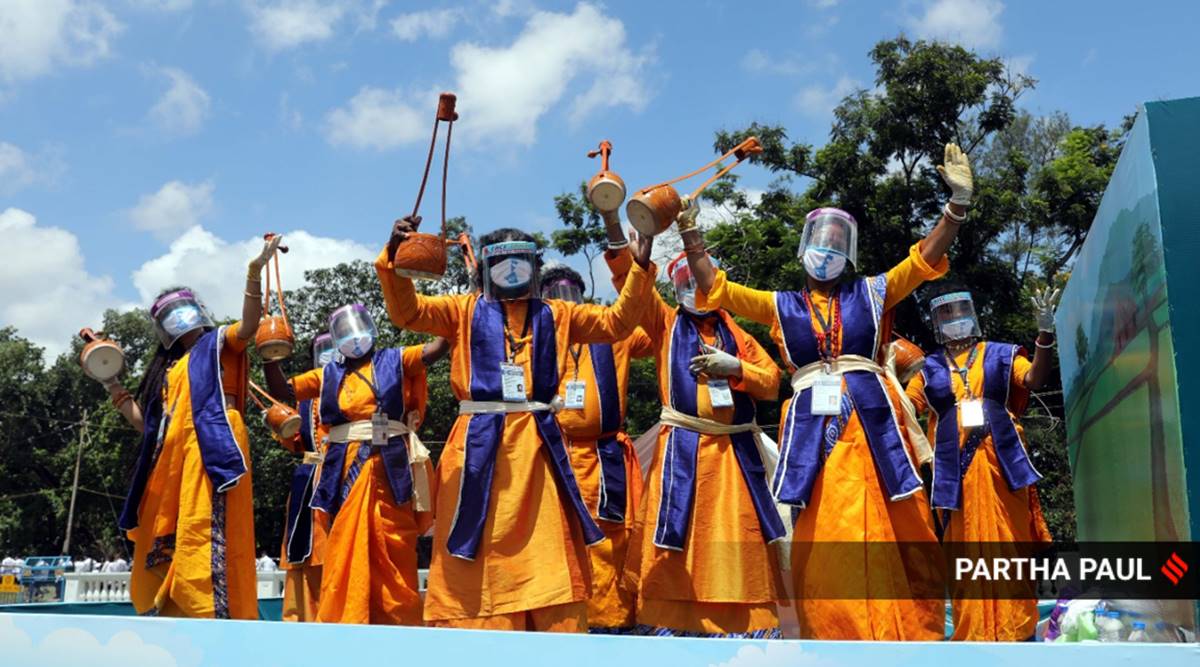 Bauls of Bengal performs during full dress rehearsal for Independence Day at the Red Road in Kolkata on August 13, 2020. (Express photo: Partha Paul)