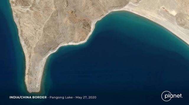 Satellite images from May 27 showing Chinese tents on the north bank of Pangong Tso. Planet Labs via Reuters