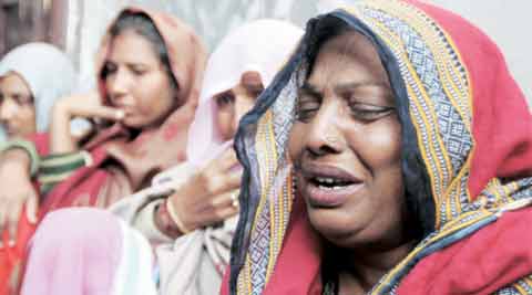 Bheem Tank’s mother and other relatives, in Abohar on Monday. (Express Photo by: Gurmeet Singh)