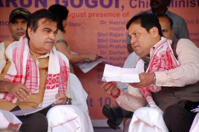 Even as Union minister for road transport, highways and shipping Nitin Gadkari on Saturday laid foundation stones for two crucial bridges across the Brahmaputra and announced that the Centre would spend nearly Rs 1,00,000 crore for roads and bridges in the northeast in the next five years, Assam Chief Minister Tarun Gogoi skipped the function by calling it an election gimmick.