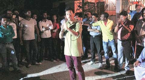 Bhaichung Bhutia campaigns by night in Siliguri. (Express Photo by Aniruddha Ghosal)