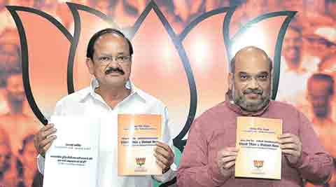 Amit Shah and Venkaiah Naidu release a booklet, Know the Truth, in New Delhi on Thursday. (Source: PTI)