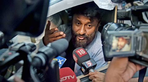 Film director Vivek Agnihotri interacts with the media after his car was stopped by the students at the entrance of Jadavpur University campus for screening of his film ‘Buddha in a Traffic Jam’ in Kolkata on Friday. (Source: PTI)