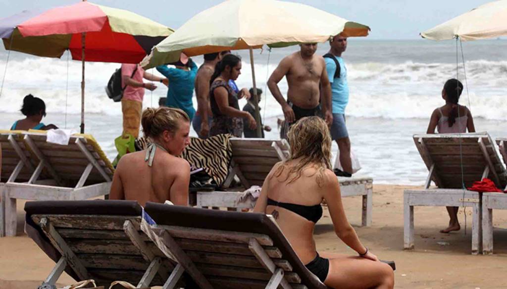 Tourists, both international and domestic, relax at a beach in Goa. Express Photo