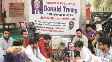 To pledge their “support” for the billionaire businessman, over a dozen Hindu Sena members gathered at Jantar Mantar with a pandit in tow and posters of Trump, either beaming or waving, in their hands. The havan began at 12.30 pm and continued for an hour, during which Hindu Sena members urged god to shower his blessings on Trump.
