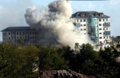 By evening, the militants were firing intermittently, possibly to save ammunition and extend the gunbattle. Army officers said they were in no hurry to storm the building and the operation to flush out the militants could take time.