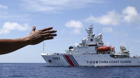 File Photo: In this photo taken March 29, 2014, Philippines navy personnel motions towards a Chinese Coast Guard to make way as they block them from entering Second Thomas Shoal in the South China Sea. The Permanent Court of Arbitration (PCA) issued its ruling on July 12, 2016, in The Hague in response to an arbitration case brought by the Philippines against China regarding the South China Sea, saying that any historic rights to resources that China may have had were wiped out if they are incompatible with exclusive economic zones established under a UN treaty. (AP Photo/Bullit Marquez)