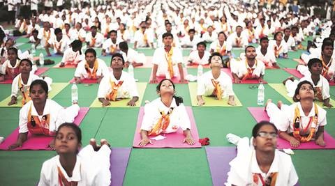 The sun had slipped well beyond the horizon behind Rashtrapati Bhavan Sunday evening but yoga guru Ramdev was only warming up. He was already a couple of hours into a yoga camp being organised on Rajpath, two days before International Yoga Day. Ramdev had already led an estimated 35,000 practitioners in performing 28 pre-decided yoga positions. Last year, Prime Minister Narendra Modi had led the crowd in performing what were strictly traditional yoga poses. This year, the programme was being organised in the evening and Ramdev had included popular musician Kailash Kher to sing for the gathering before beginning his discourse. This time, Ramdev promised the crowd something more. His saffron dhoti knotted twice at his waist, he began by running in place, which he called ‘yogic jogging’. He urged the crowd to emulate him and they did. The guru smiled widely as he requested Kher to belt out one of his popular hits — ‘Aaj mere piya ghar aavenge’. [related-post] Watch Video: What's making news As Kher’s band strummed their electric guitars and laser lights flashed across the stage, Ramdev began to perform yoga to the music. The crowd, especially the younger section, enthusiastically attempted to follow his lead. The event began to feel like a concert when Kher began to sing ‘Bam Lahiri’ — a peppy version of an old Haryanvi devotional song about Lord Shiva and Parvati. Ramdev then unknotted his waist length hair and proceeded to do jumping jacks. He swung his arms from side to side and touched his toes. Raising the difficulty level a notch, he mixed it up with a bit of Bhujangasana. Ramdev then swung his leg over his head. The crowd, which had attempted to follow the guru’s moves during the first song, gave up and began taking selfies on their phones. Ramdev was accompanied onstage by a number of BJP leaders including Union Minister Venkaiah Naidu, MPs Manoj Tiwari, Babul Supriyo and Meenakshi Lekhi. Lekhi, the New Delhi MP, was the only one who attempted to match Ramdev’s steps.” “Himmat wali behen hai yeh. Lagta hai aaj adha kilo kam karke jayegi,” he joked. Lekhi wasn’t the only one at the receiving end of Ramdev’s wit. When Supriyo confused which arm goes around which leg in the pose known as Vakrasana, Ramdev cheekily chided the MP. “Supriyo, you go into politics and you forget what is left and what is right,” said the guru. It was all in good humour though and Supriyo grinned. Though Ramdev was sharing the stage with political heavyweights, he was undoubtedly the star of Sunday’s show.