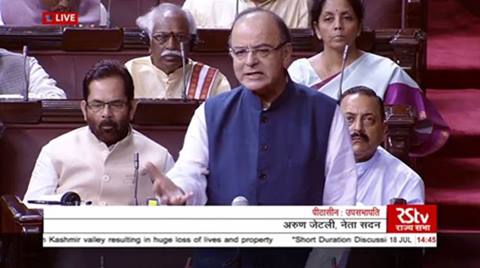 Leader of the House and Union Finance Minister Arun Jaitley speaking in Rajya Sabha.