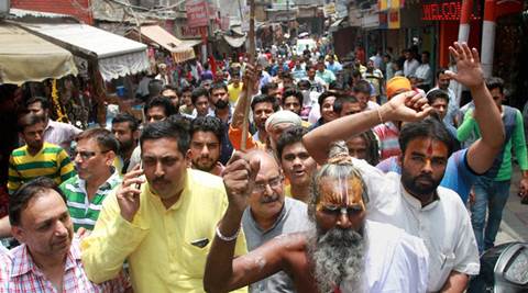 Protesters shouting slogans during a rally in Jammu on Wednesday. (PTI Photo)