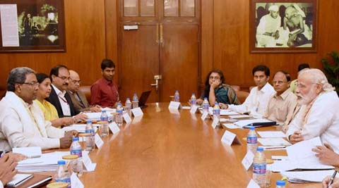 Prime Minister,Narendra Modi chairing a high level meeting on the drought situation with the Chief Minister of Karnataka, Prime Minister,Narendra Modi chairing a high level meeting on the drought situation with the Chief Minister of Karnataka, Siddaramaiah, in New Delhi on Saturday. PTI , in New Delhi on Saturday. (Source: PTI)