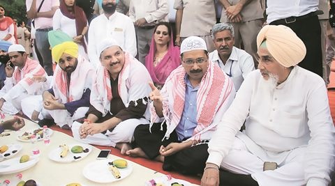 Delhi Chief Minister Arvind Kejriwal on Monday attended an Iftaar party at Malerkotla, which had seen violence after “torn” pages of the holy Quran were found last month.