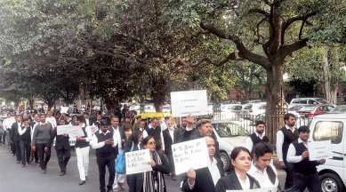 More than 100 lawyers marched from the Supreme Court to Bar Council of India Wednesday, demanding “strict and time bound action” against the lawyers who assaulted JNU student leader Kanhaiya Kumar and journalists on Patiala House Courts premises.