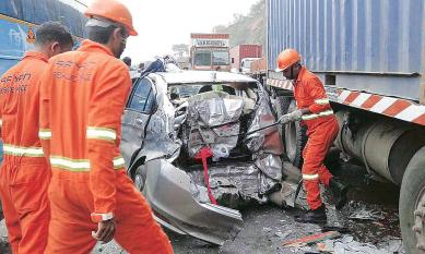 As per the information given by Khopoli police station, a goods container which was on the way to Mumbai, suddenly applied brakes to avoid hitting another vehicle near Adoshi tunnel. Following which, three vehicles — a Honda City, a Swift and a truck — which were behind this container, rammed into each other.