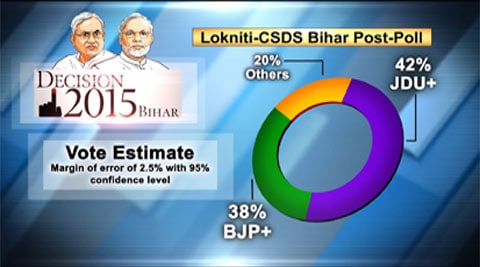 As the guessing game over Bihar comes to a close this Sunday, initial trends emerging from the post-poll survey done by Lokniti-CSDS (not an exit poll) for The Indian Express, indicate a distinct turnaround in favour of the Mahagathbandhan. A couple of weeks before the first phase of polling, the NDA was ahead in the electoral race in Bihar. The Lokniti-CSDS pre-poll survey for The Indian Express estimated a lead of 4 per cent for the NDA over the Mahagathbandhan. The five weeks of campaign seems to have brought small but significant changes. The NDA seems to have slipped while the Gathbandhan seems to have gained momentum and taken a lead over the NDA. As per our post-poll estimate, the Gathbandhan seem to have a lead of 4 per cent over the NDA. The Mahagathbandhan may end up with roughly 42 per cent of the votes while the NDA would have to lag behind with around 38 per cent votes. Watch Video: Lokniti-CSDS Bihar Post Poll Shows Turnaround In favour of Nitish-Lalu [related-post] The smaller parties and independents together might end up with 20 per cent votes. This lead could result in a major headline on Monday. The post-poll study was conducted at 240 locations spread across 60 Assembly constituencies. A total of 3939 voters were interviewed. We are reasonably confident that the direction of the result would be as indicated by the post-poll survey. What is more crucial at this stage is the fact that with a contest as close as this, the outcome in terms of seats would definitely remain a suspense till Sunday afternoon. Our analysis to be presented in these pages next week will come up with more details but it is necessary that we briefly discuss here the central puzzle: how did people’s choice change over the last five weeks or so? Obviously, the most visible answer to this question is campaign. This election would certainly go down as one where the campaign proved to be critical. The difference in outcomes of the two surveys is also because (as the post-poll survey found) many voters finally made up their mind very late. While one fourth made up their mind either on the day of voting or a day or two before it, another 15 percent decided who to vote for only after seeing the candidates. Rarely in any elections in the recent past, has such a large proportion of voters taken their voting decision at the very last minute. The survey found that the late swing of voters benefited the Mahagathbandhan. In many ways, this has been an election of several paradoxes. As we had noted in the pre-poll analysis, the Mahagathbandhan began with a goodwill in favour of Nitish Kumar. At the same time, the central figure campaigning for NDA, Prime Minister Narendra Modi too, had a very robust positive image. So, it has been a contest between the state level leader and the national level leader. Another paradox is that while Nitish Kumar’s popularity and developmental record has certainly helped the Mahagathbandhan do well, it is Lalu Yadav’s RJD which is likely to do better than the JD(U) as per our post-poll survey. Finally, in the main theatre of OBC politics since 1990s, a new configuration emerged during these elections: the Yadav-Kurmis on one side and the more backward sections on the other side. Whether the Mahagathbandhan managed to forestall this configuration is something we need to look into once the details of the post-poll are available.
