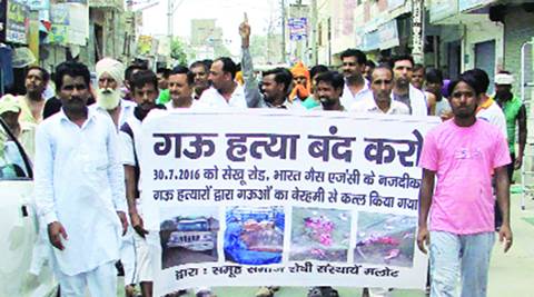 The police confirmed on Monday that the animal was a buffalo but are still looking for three others booked in the case. The five Dalits had been called on Saturday by residents of Amrudan Wala Bagh to dispose of a dead buffalo that had got electrocuted in the electrified fencing of an orchard and was stuck in the barbed wire. The carcass had started spreading a foul smell.