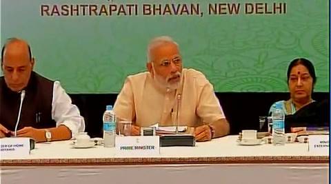 Prime Minister Narendra Modi, with union ministers Rajnath Singh and Sushma Swaraj among others, on Saturday chaired the 11th meeting of Inter-State council in Delhi.