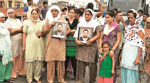 Relatives of Gurpreet Gopi, 27, protest against Jalandhar police in October 2015. Gopi, a labourer, was caught with 6g of heroin and died in jail in July 2014.