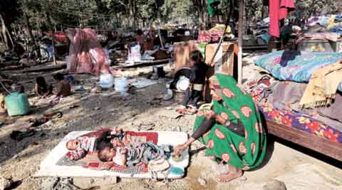 At Shakur basti, where 500 jhuggis were razed in a Railways demolition drive. (Express Photo by: Renuka Puri)