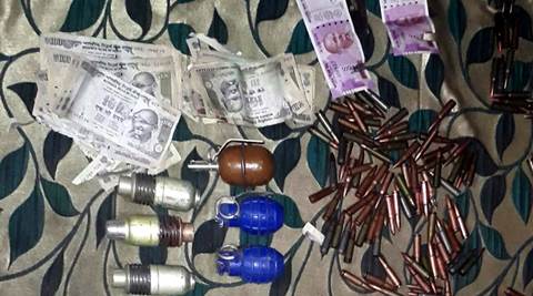 Jammu and Kashmir: Newly introduced Rs 2,000 notes along with ammuniton were recovered from two Militants gunned down in Bandipora on Tuesday. (Express Photo)