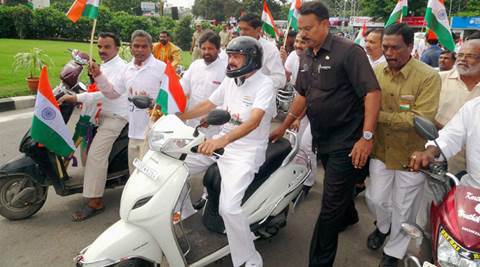 Hyderabad: Union I & B Minister M Venkaiah Naidu participating in Tiranga Yatra, in Hyderabad on Monday. PTI Photo/PIB