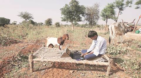 Manjuben, 45, who never went to school, recently learnt to say “laptop”. Smiling indulgently at her 19-year-old son Ashok Kateriya, who is busy surfing the Internet, surrounded by the family’s goats, cows and calves, in Nana Mota village, she says one needs “mahiti (information)”.