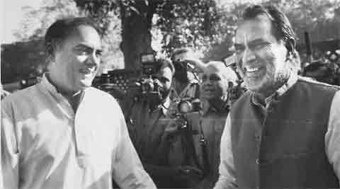 Rajiv Gandhi with Chandra Shekhar, whose govt he pulled down in 1991. (Express archive)
