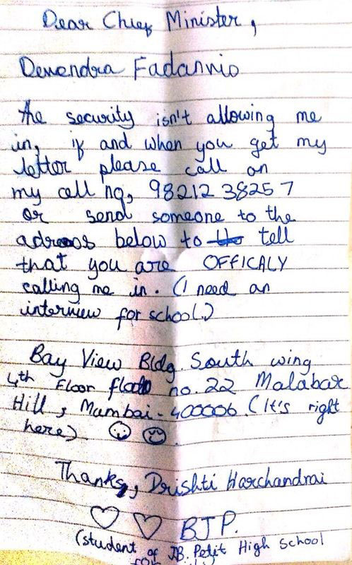 Drishti, in her note, made a special request to the CM to not ignore her letter. And to her excitement, Fadnavis eventually personally invited her for an interview at his home.