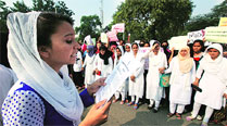 WCSU president Gulfiza Khan during the protest in Aligarh on Wednesday. (Source: Express photo by Ravi Kanojia)