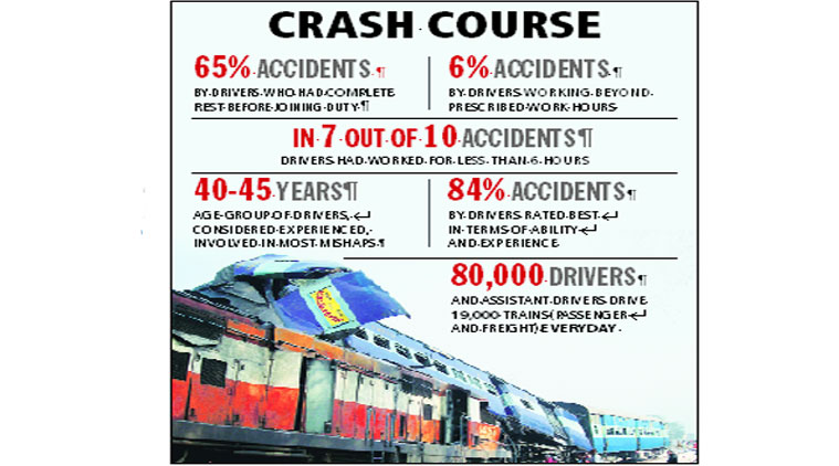 Now, in a fresh analysis of the accidents that looked into the profiles of the erring drivers, the Railway ministry has found that 70 per cent of those accidents involved drivers who had worked for only six hours or less, while 65 per cent were by those who had availed what is known as “complete headquarters rest”.