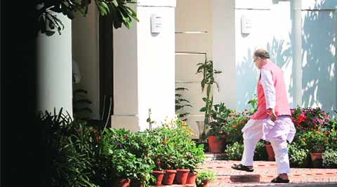Finance Minister Arun Jaitley arrives at Nitin Gadkari’s house for the BJP-RSS meeting, in New Delhi on Monday. (Source: Express Photo by Ravi Kanojia)