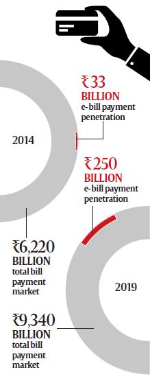 While the government is looking to reduce the usage of cash and push cards or online transactions for payments, a report prepared by Motilal Oswal Financial Services points that e-bill payments is expected to grow at a fast pace.