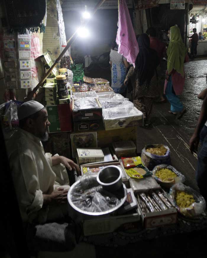 Shopkeeper Baba Khan waits patiently for customers to buy silmal (double-roti), papad, sewai in multiple flavours and khajur. “Ramzan has changed a lot over the past 18 years. Initially, sales would increase during the festival months. Poverty, high prices and the humidity have resulted in less sale this year,” he says.