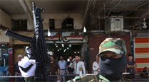 An Iraqi Shiite masked militiaman, a follower of Shiite cleric Muqtada al-Sadr, holds up his machine gun during a parade in the northern oil rich province of Kirkuk, Iraq. ( Source: AP )