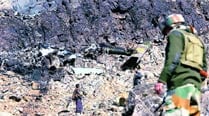 Army personnel inspect the debris of the helicopter crash in Bandipore. (Source: PTI)From the bottom rung of the IAF, as an airman for whom piloting an aircraft could only have been a fantasy, Tahir Khan rose. He graduated, became an officer in the Army’s aviation unit and became Major Khan. And then, from that height, he fell —- to his death.