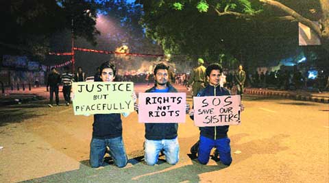 Young men at a protest in Delhi in December 2012 (Source: Express photo by Tashi Todgyal)