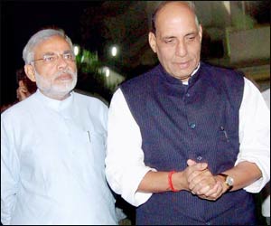 BJP’s Prime Ministerial candidate L K Advani was present on the dais along with several party leaders and chief ministers when Rajnath made his speech.