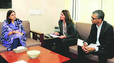 Maneka Gandhi Union Minister for Women and Child Development Maneka Gnadhi with Melinda Gates of the Bill and Melinda Gates Foundation in New Delhi on Friday. (Source: PTI photo)