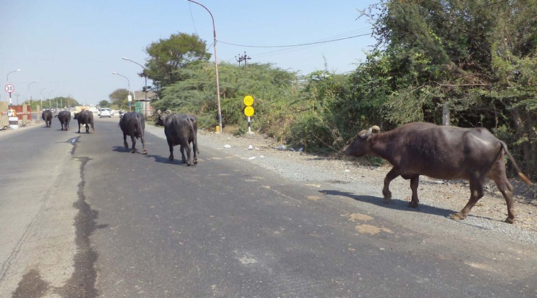 A day after a Delhi-bound SpiceJet Boeing aircraft with 170 passengers on board hit and killed a buffalo, The Indian Express found another herd entering, and leaving, the Surat airport without being frisked by a touchy security guard.