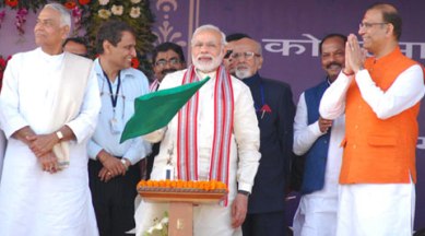 Prime Minister Narendra Modi on Friday flagged off Hazaribagh-Koderma DMU train after inaugurating Hazaribagh town railway station in Hazaribagh.