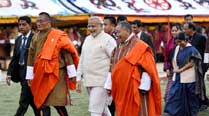 Making Bhutan his first foreign destination, Prime Minister Narendra Modi on Sunday vowed to nurture bilateral relations which he described as "B2B – Bharat to Bhutan" as he held talks with the Bhutanese King and the Premier, discussing an entire gamut of ties. Embarking on a two-day trip here to display "special and unique" status for Bhutan in India's foreign policy, Prime Minister Modi also inaugurated the Supreme Court complex built by India as part of the developmental cooperation. "The primary focus of both the meetings was the extensive development cooperation between the two countries and measures to enhance the economic ties," official sources said. Modi described the bilateral relations as "B2B relations – Bharat to Bhutan relations," the sources said on his meeting with Bhutanese King Jigme Khesar Namgyel Wangchuk and Prime Minister Tshering Tobgay. Modi announced doubling of scholarships being provided to Bhutanese students in India which will now be worth Rs two crore. Prime Minister Modi also promised to assist Bhutan in setting up a digital library which will provide access to Bhutanese youth to two million books and periodicals. The fact that the Prime Minister chose Bhutan as his first foreign destination assumes significance since China has lately intensified efforts to woo it and establish full- fledged diplomatic ties with Thimphu. Modi, accompanied by External Affairs Sushma Swaraj, National Security Advisor Ajit Doval and Foreign Secretary Sujatha Singh, was accorded a grand welcome as he arrived at the Paro airport and was received by Tobgay and several of his Cabinet colleagues. The Bhutanese government rolled out the red carpet as Modi was given a ceremonial guard of honour. The Prime Minister drove down from Paro to Thimphu, a distance of about 50 km, traversing through the picturesque mountainous ranges. Common people, including children, in colourful attire lined up most of the road between Paro and Thimphu, waving Indian and Bhutanese flags. Big hoardings carrying Modi's photographs also could be seen en route. Modi's meeting with the Bhutanese King lasted for nearly an hour and then he held talks with Tobgay. Modi expressed satisfaction at India being considered as a privileged partner of Bhutan and underlined that his government "would not only nurture these strong bonds but would also strengthen them."