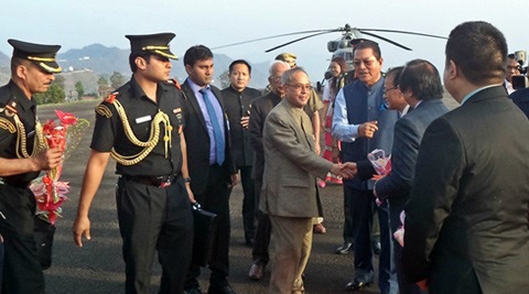 President Pranab Mukherjee arrived in Mizoram capital Aizawl on Thursday and was greeted by hundreds of students in school uniforms, and others draped in traditional shawls of mourning, to protest against the spate of transfers and sackings of the state’s Governors. Mizoram has had seven different Governors within nine months.