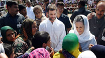 Around 41 houses in this hamlet, located about 68 km away from Srinagar, were damaged by the floods on September 5. The 19 families of this village lost every household item in the calamity and could not control their emotions when Sonia and Rahul reached a relief camp in the village.