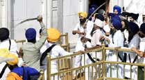 Clashes broke out between Sikh groups at the highest temporal seat of the community inside the Golden Temple complex on Friday, even as Amritsar observed a bandh to mark the 30th anniversary of Operation Bluestar. Video footage showed people brandishing swords, spears and sticks and clashing and chasing each other outside the Akal Takht building. At least six people, including a police head constable, were injured, Additional Deputy Commissioner of Police (Special) Harjit Singh Brar said.