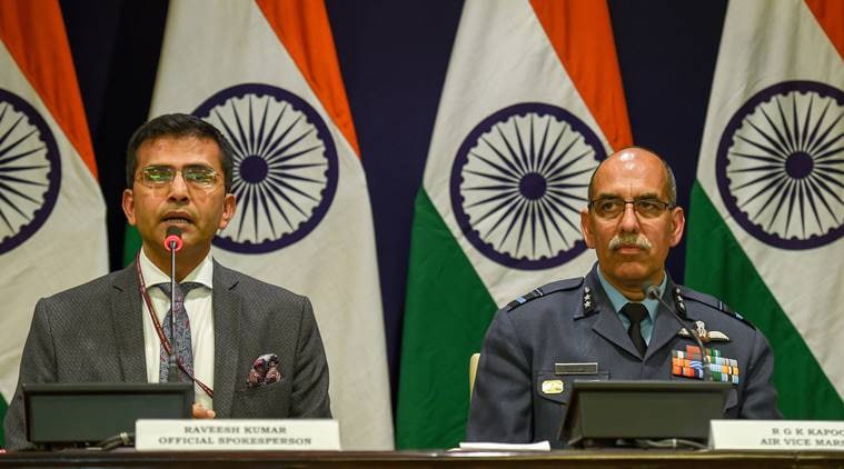 New Delhi: MEA spokesperson Raveesh Kumar and Air Vice Marshal RGK Kapoor at a media briefing in New Delhi, Wednesday, Feb 27, 2019. (PTI Photo)