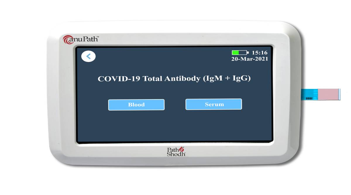 This test has been developed by leveraging PathShodh’s Lab-on-Palm platform “anuPathTM”, which interfaces with disposable test strips functionalised with an immunoreceptor specific to Covid-19 antibodies.